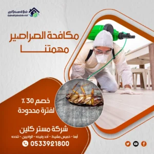 إذا كنت بحاجة إلى مكافحة الصراصير في خميس مشيط، كل ما عليك فعله هو الاتصال بـ مستر كلين عبر الرقم 0533921800. فريقنا المتخصص سيصل إليك في أسرع وقت وبأفضل الأسعار مع خصم 30%.